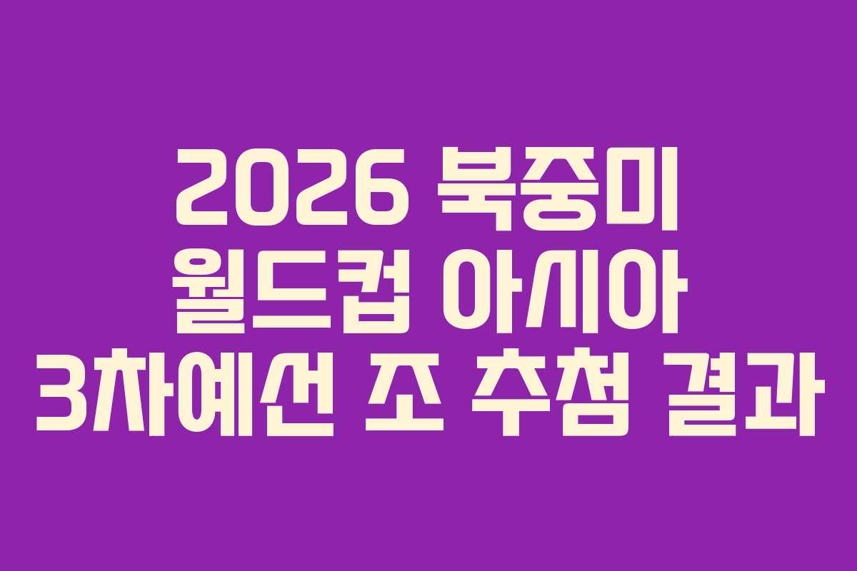 2026년 북중미 월드컵 아시아 3차예선은 2024년 9월 5일부터 2025년 6월 10일까지 진행됩니다. 각 팀은 총 10차례의 홈앤어웨이 경기를 치르며, 최종적으로 각 조 1, 2위가 본선에 진출합니다.