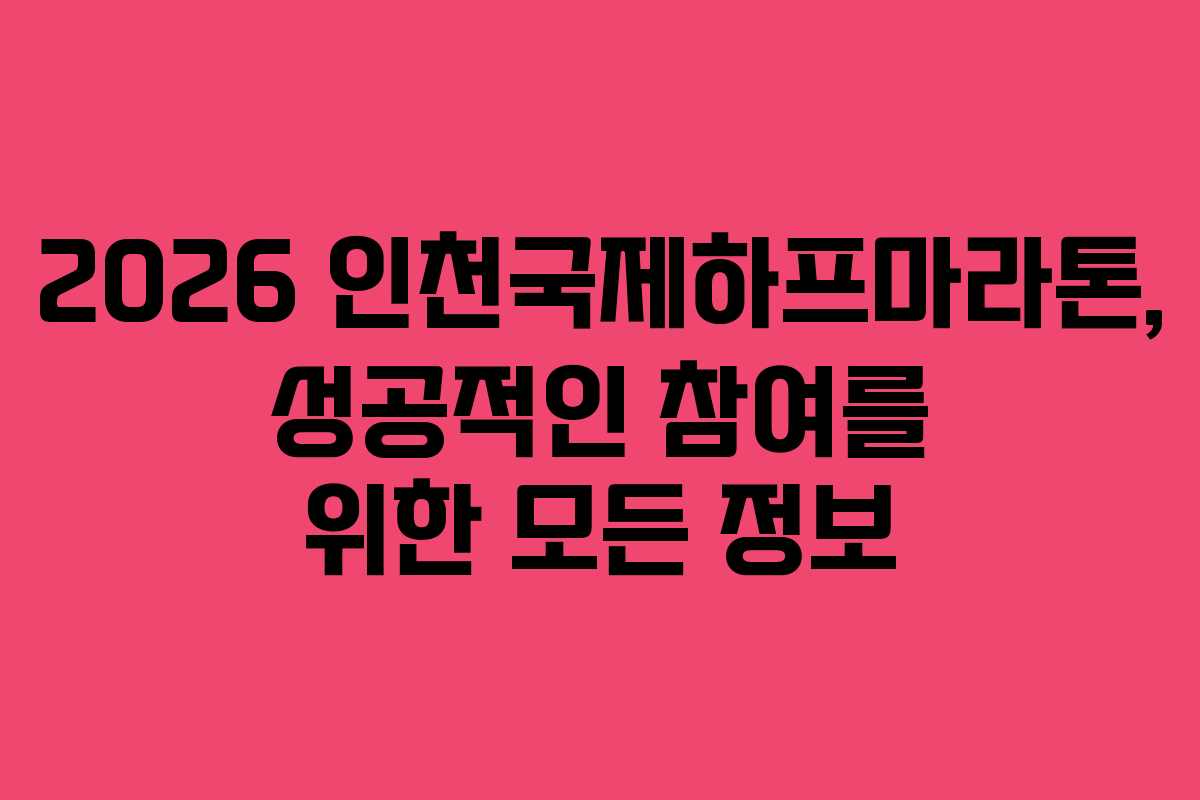 2026년 3월에 개최되는 제26회 인천국제하프마라톤대회는 수도권에서 열리는 중요한 마라톤 행사로, 다양한 참가자들이 모여 경쟁과 즐거움을 나누는 자리입니다. 이 글에서는 대회 일정, 참가비, 코스 특징, 시상 안내 등을 상세히 정리하여 제공하겠습니다.