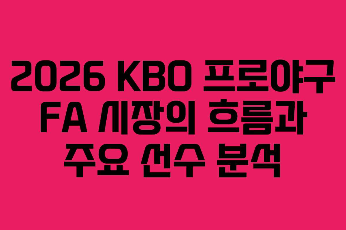 KBO의 FA 제도는 선수들이 소속 팀의 구속에서 벗어나 자유롭게 계약을 맺을 수 있는 시스템을 의미한다. 2026년 FA 시장의 일정은 다음과 같다.