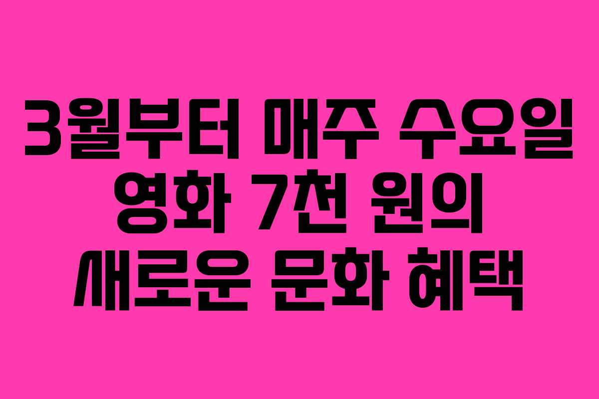 2026년 3월부터 매주 수요일마다 영화 관람을 7천 원의 가격으로 즐길 수 있는 기회를 놓치지 않도록 미리 계획을 세우고 준비하는 것이 필요하다. 이러한 노력을 통해 문화 생활을 더욱 풍성하게 채워갈 수 있을 것이다.