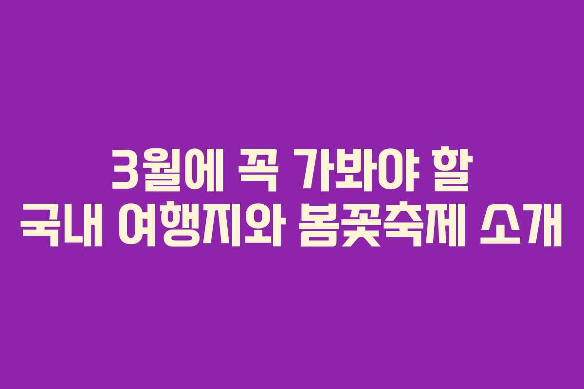 봄의 따뜻한 햇살이 점점 우리의 곁으로 다가오는 이 시기, 많은 이들이 여행 계획을 세우고 있습니다. 2026년 3월은 특히 다양한 꽃축제가 열리는 시기로, 봄꽃을 즐기기에 최적의 시점입니다. 이번 포스팅에서는 올해 3월에 가볼 만한 국내 여행지와 봄꽃축제를 소개하며, 이 멋진 계절을 만끽할 수 있는 방법을 안내하겠습니다.