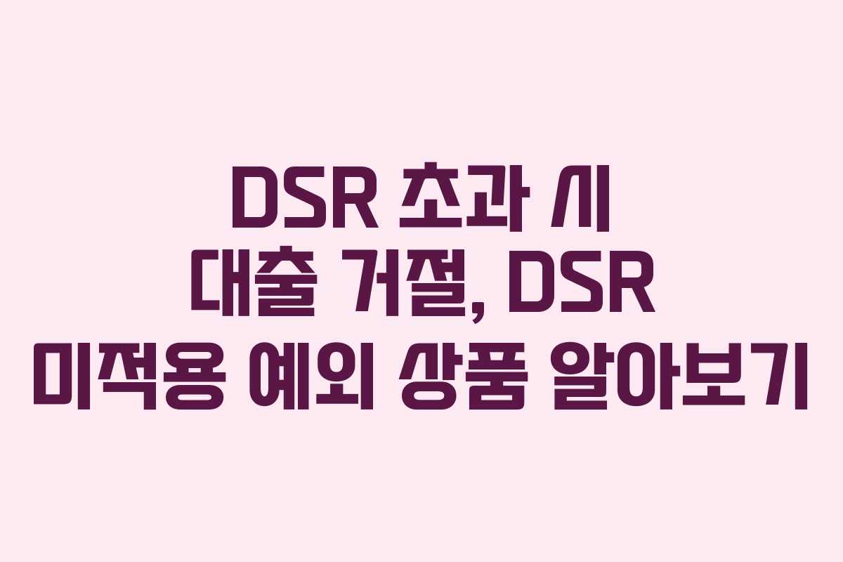 주택담보대출이나 신용대출 신청 시 DSR(총부채상환비율) 규정으로 인해 대출이 거절되는 경우가 많습니다. 이번 포스팅에서는 DSR 40% 또는 70%를 초과한 경우에도 대출이 가능한 DSR 미적용 예외 상품에 대해 설명드리겠습니다.