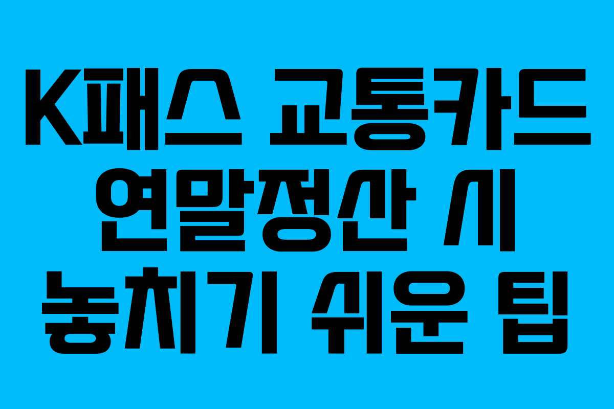 K패스 교통카드 연말정산 시 놓치기 쉬운 팁