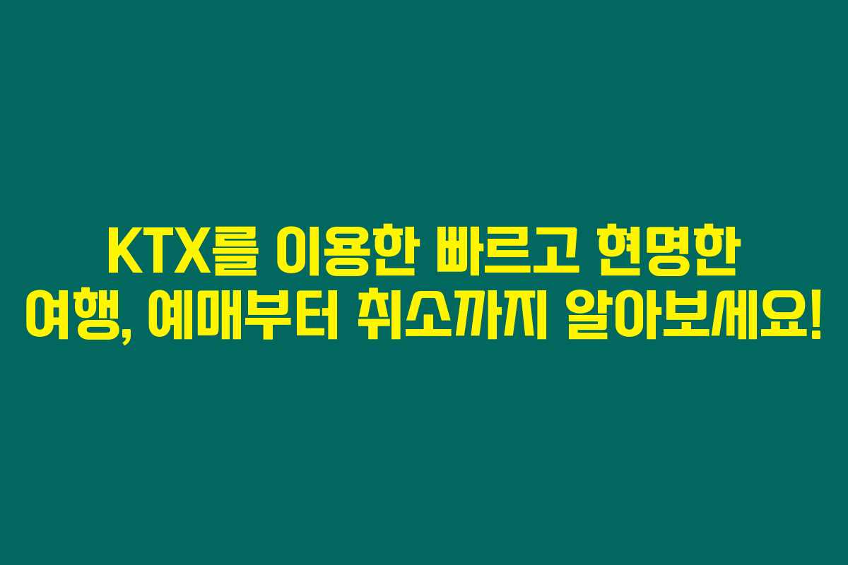 결론적으로, KTX는 대한민국에서 가장 빠르고 편리한 교통수단으로, 다양한 혜택과 혜택을 이용할 수 있는 방법도 많답니다. KTX를 통해 여행을 더욱 즐겁게 만끽하시길 바랍니다!