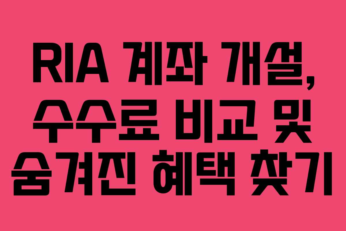 - RIA 계좌 활용 단계별 가이드