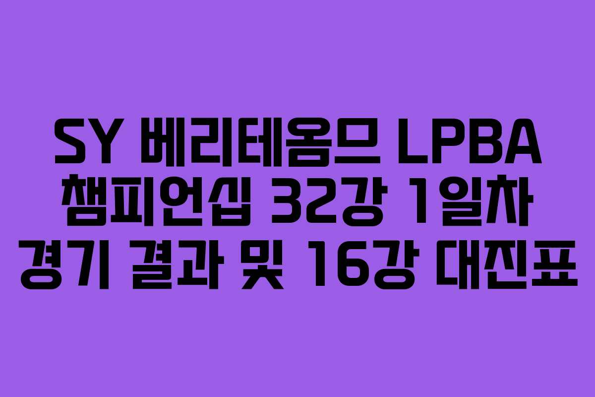 2025-26 시즌의 SY 베리테옴므 LPBA 챔피언십이 시작되었습니다. 이번 대회는 프로당구의 열기를 더욱 고조시키며 선수들의 실력을 겨루는 장이 될 것입니다. 9월 2일부터 3일까지 진행되는 32강 경기의 첫날 결과와 16강 대진표를 정리해보겠습니다.